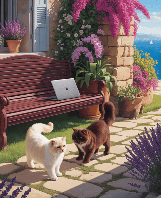 While the online world races ahead, I’ve chosen a slower, more intentional rhythm — one rooted in simplicity, creativity, and quiet freedom. From my corner of the French Riviera, with the Mediterranean just beyond my garden and three curious Persian cats always nearby, I’ve built a life that reflects my values — and a business that supports it.